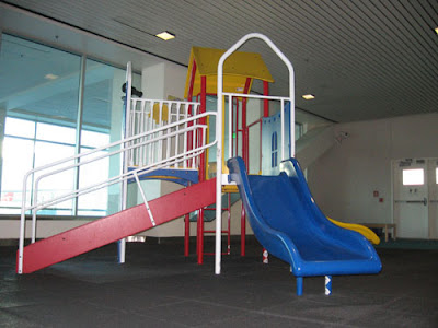 I wish I had a photo from the play area in Salt Lake City. My kids spent an hour picking up Duplo building blocks, filling them with Lincoln Logs, and organizing them in a little Fisher Price playhouse. I don’t know what the organizational process was, but it kept them busy for an hour. And when you’re trying to entertain two kids over a 3 hour layover, this is a great thing. The Portland play structure (first above) obviously has a lot of physical activity to it, and it’s always a good thing to try and get as much energy out of the kids before they’re on a plane for three and a half hours. Even the Detroit one (second above) kept the kids busy for half an hour until we were ready to board the plane… moving chairs in and out of the house, pretending the house was a take-out restaurant…