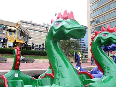 Oh, and we got to ride on paddle boats in the harbor. Not these cool dragon ones, though. I wish.